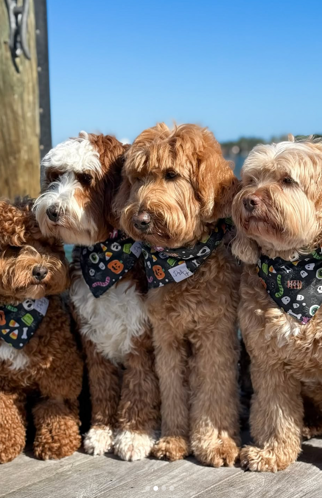 Celebrate the sweet and spooky spirit of Halloween with Dog and Taylor®’s Pumpkin, Bones & Candy Corns Bandana.