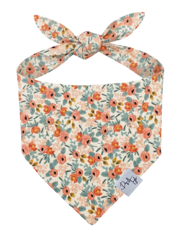 Delicate, romantic, and effortlessly chic — the Les Fleurs Tie-On Dog Bandana is a floral dream for stylish pups. Featuring petite peach and coral blooms with hints of sage green, this design brings timeless elegance and a hint of French countryside charm to every walk.