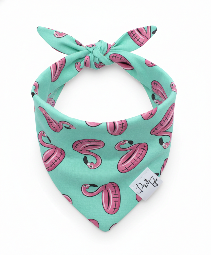 🦩✨Let your pup soak up the sunshine in style with the Flamingo Floats Dog Bandana by Dog & Taylor® — a bright and breezy summer essential. Featuring cheerful pink flamingo floats on an aqua background, this design is pure tropical fun! Crafted from soft, premium cotton, it’s lightweight, breathable, and perfect for beach days, poolside lounging, or everyday walks. Whether your dog’s a beach bum or backyard adventurer, this bandana adds a splash of sunshine and coastal charm to every outfit.