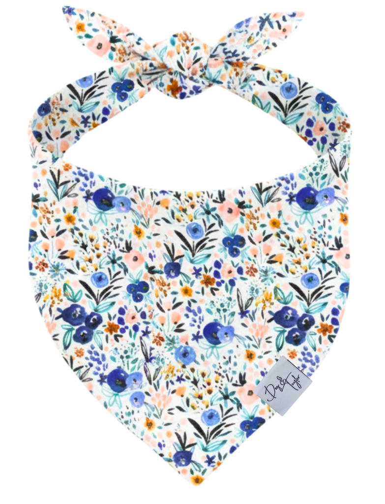Add a touch of floral elegance to your pup’s wardrobe with the Bluebell Garden Bandana. Featuring a charming mix of delicate blue blooms, soft peach accents, and leafy greenery, this nature-inspired design brings a fresh and stylish look to everyday walks and special outings alike. Perfect for spring and summer adventures, this bandana is made for pups who love to stand out in soft, botanical style.
