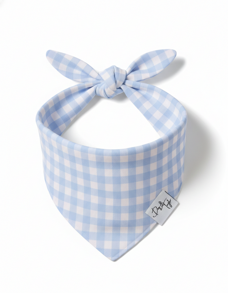 Fresh, classic, and effortlessly stylish — the Springtime Gingham Dog Bandana is a timeless staple for pups who love a clean, preppy look. Featuring a soft baby blue and white gingham pattern, this bandana brings light, airy spring vibes that transition beautifully into everyday wear all year long.